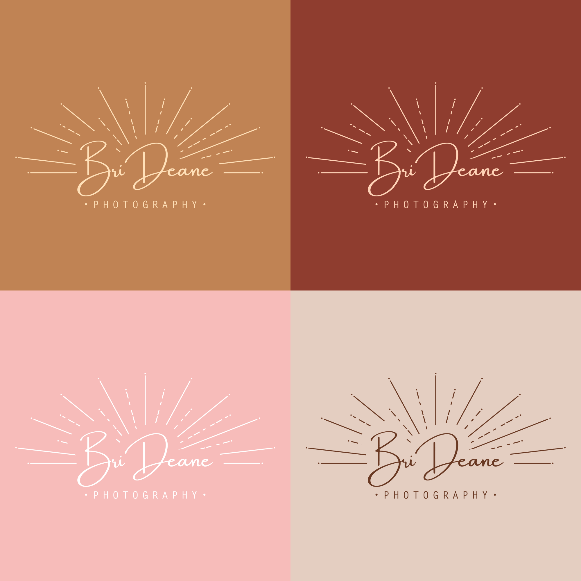 Logo for Bri Deane Photography. Client wanted their name in cursive with a sun ray motif.